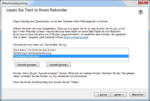 Ich klicke weiter und schließe die Konfiguration ab und darf wieder die Spracherkennungssoftware trainieren lassen.